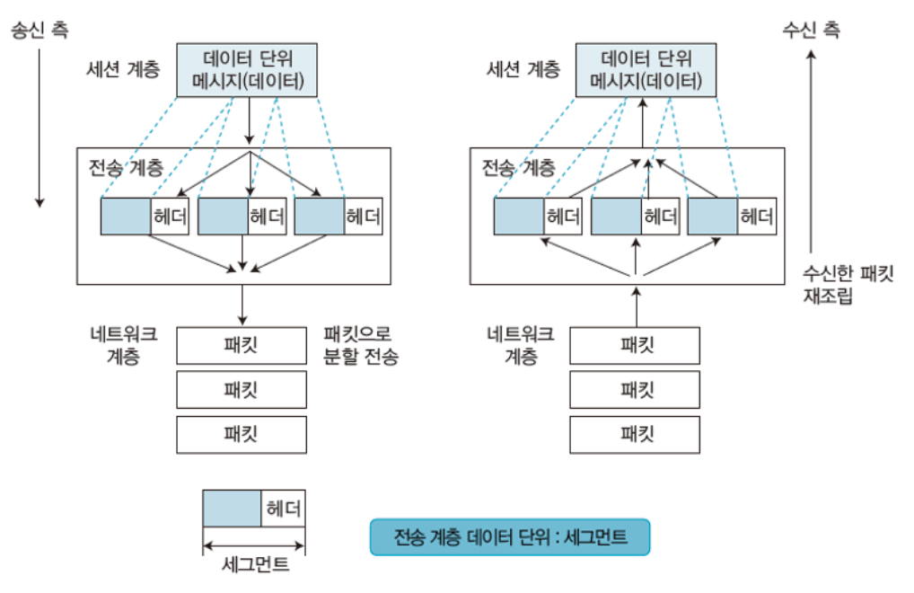 - 프로토콜(TCP, UDP)과 관련된 계층으로 오류 복구와 흐름 제어 등을 담당하며, 두 시스템 간에 신뢰성 있는 데이터를 전송함