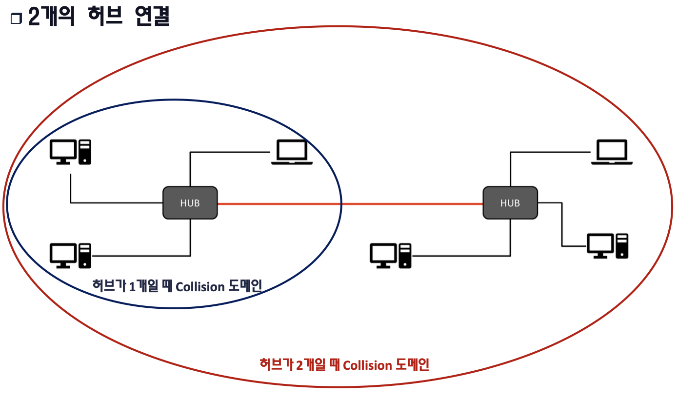 - 허브의 단점이 Collision Domain의 확대를 해결