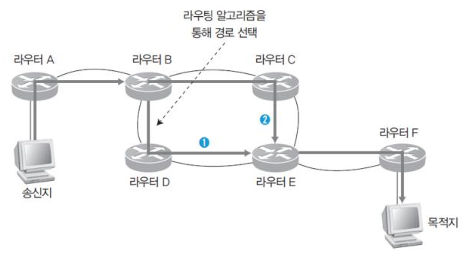 - 라우터가 네트워크 연결 상태를 스스로 파악하여 최적의 경로를 선택해 전송
