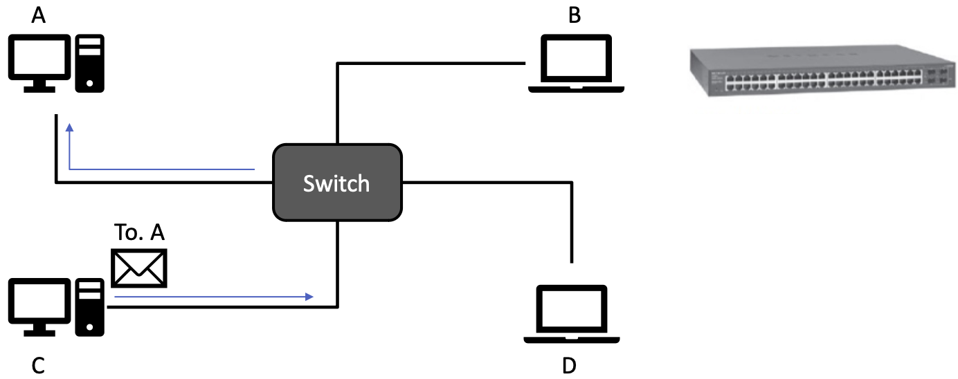 - 기본적으로 데이터 링크 계층에서 작동하는 스위치를 뜻함 (L2 스위치)