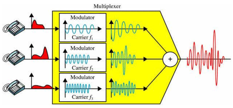 FDM - 링크의 주파수 스펙트럼이 링크 전체에 걸쳐 설정된 연결 사이에서 분할됨