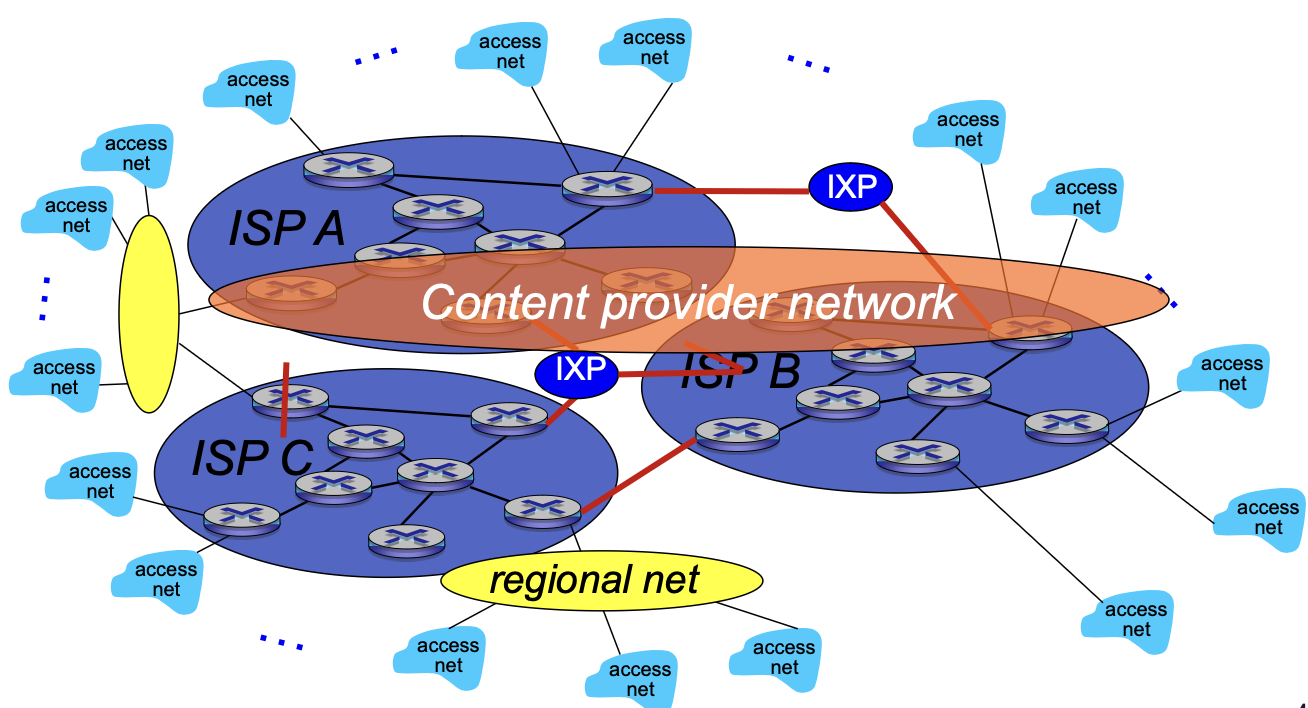 접속 ISP는 상호 연결되어야 함 → 그래야 2개의 호스트가 서로 패킷을 보낼 수 있음