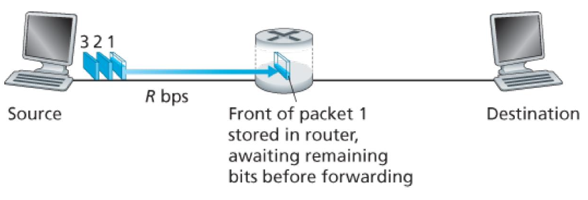 - 패킷 교환 지연 = L비트 패킷을 링크로 전송하는 데 필요한 시간 = L(bits) / R(bits/sec)