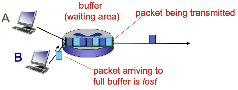 - (일시적으로) 링크에 대한 패킷 도달률이 출력 링크 용량을 초과함