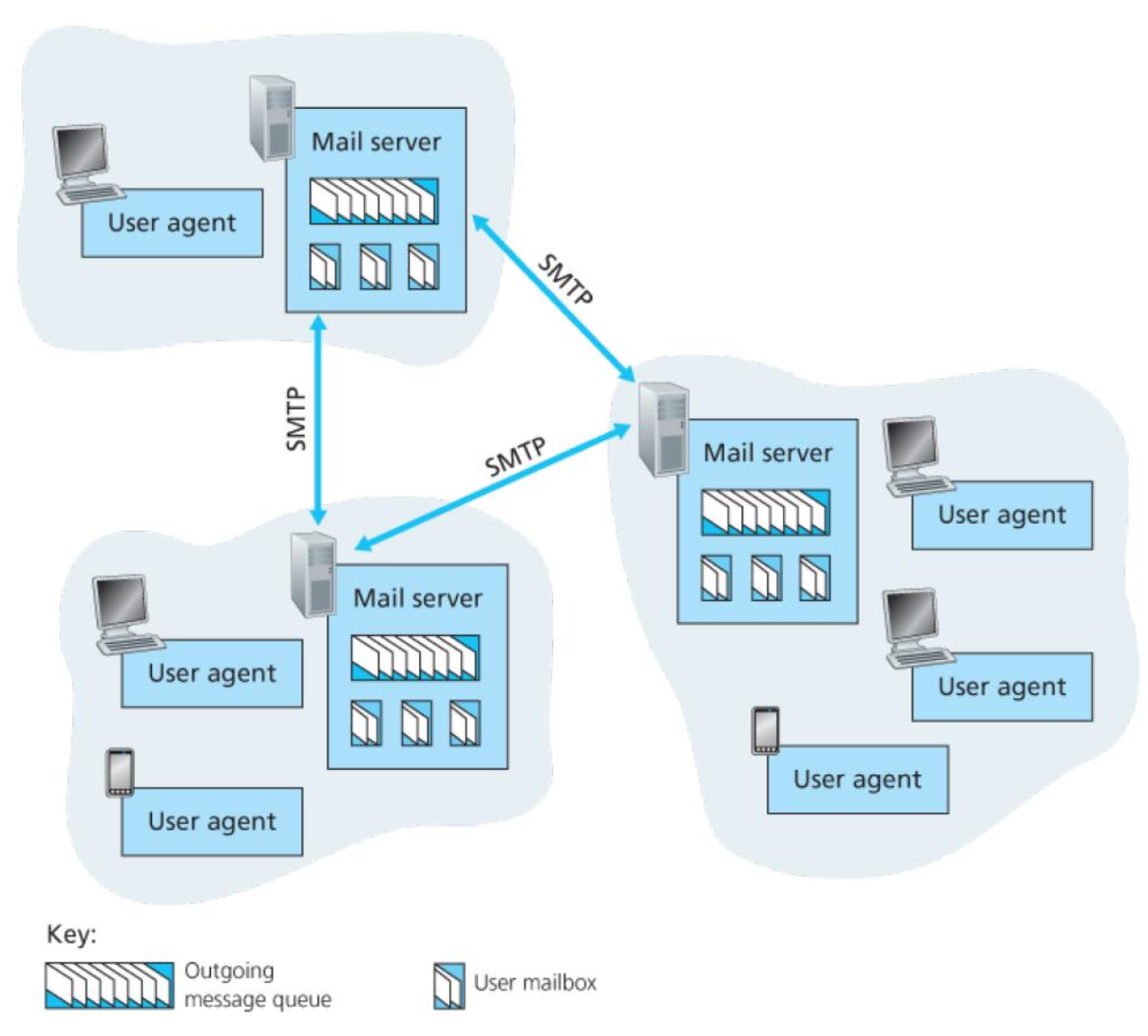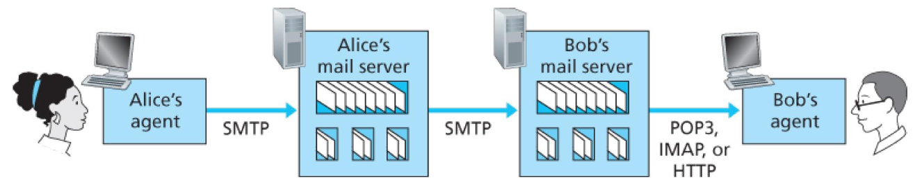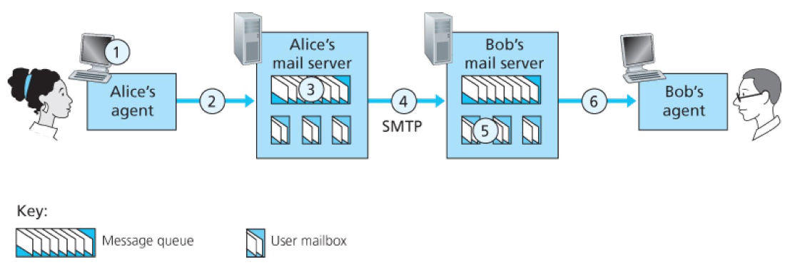 앨리스가 먼저 자신의 메일 서버에 전자 메일을 푸시 함으로써 앨리스의 메일 서버는 밥의 메일 서버가 켜셔 있을 때까지 밥의 메일 서버에 메시지를 반복적으로 전송할 수 있음