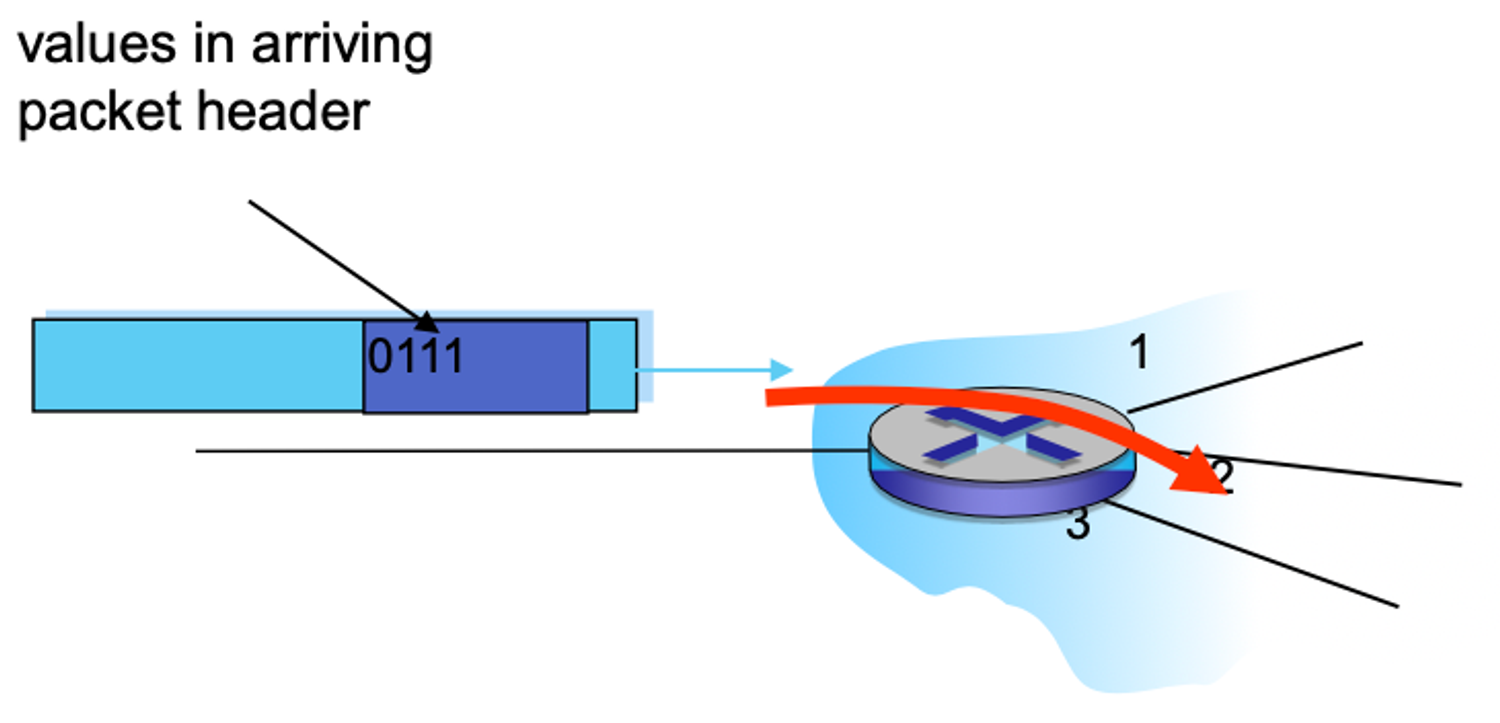 Forwarding: 다수의 input 포트와 output 포트가 있을 때 들어온 패킷를 적절한 output 포트로 보냄
