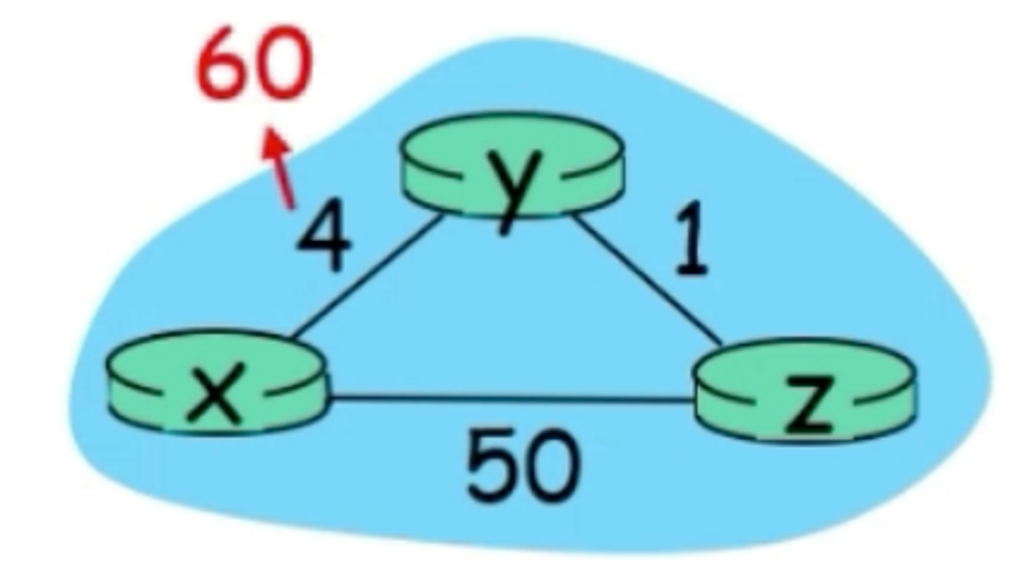 y는 z한테 패킷을 보내고 z는 y한테 패킷을 보내게 되므로 무한 루프에 빠진다는 문제도 발생할 수 있음