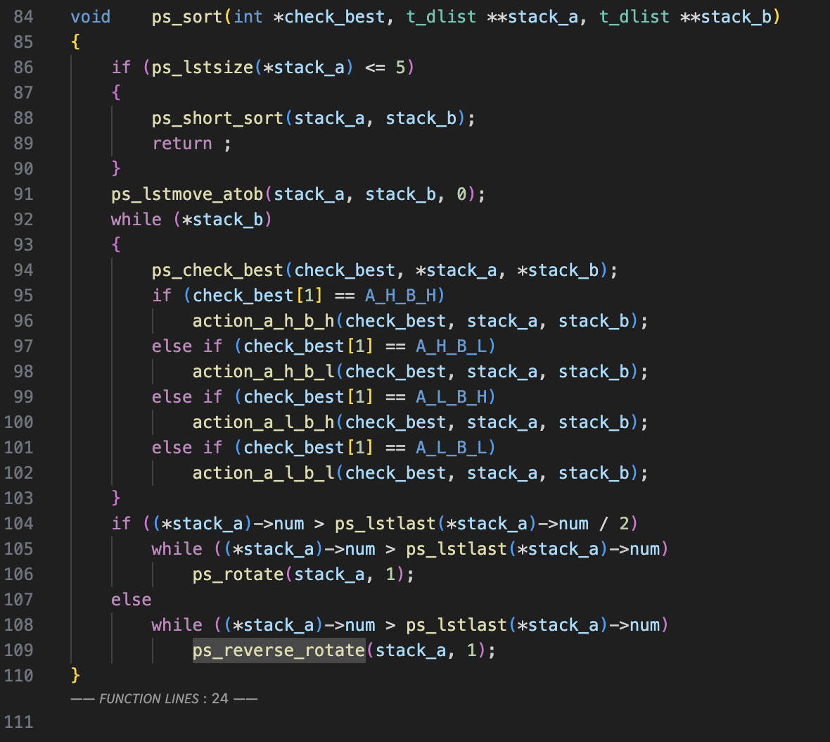 인터넷에 push_swap 그리디 알고리즘에 대한 글이 다른 알고리즘에 비해 상대적으로 적던데 클러스터 내에서 그리디 알고리즘이 어렵다는 얘기가 돌아 시도하는 사람이 적어서 그렇다고 생각한다. 하지만 직접 구현해보니 크게 어렵지는 않았어서 다른 분들도 그리디 알고리즘을 어렵게만 생각하지 말고 한번 시도해 보는 것도 좋을 것 같다고 생각한다.