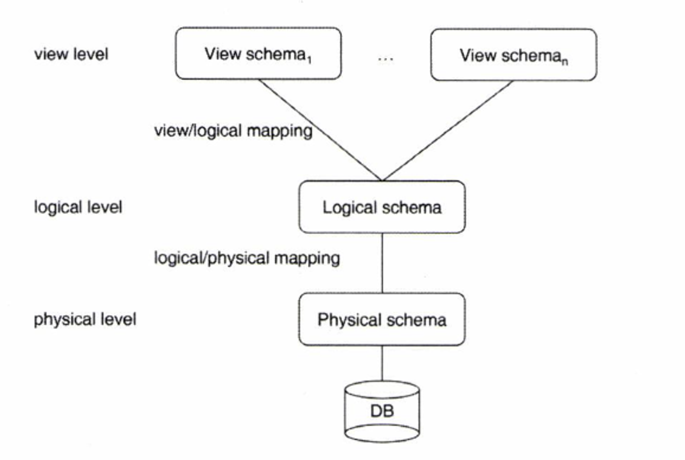 아래의 세 단계는 각각 자신 레벨에서 변화하더라도 다른 레벨에 영향을 미치지 않는 데이터 독립성을 지닌다.