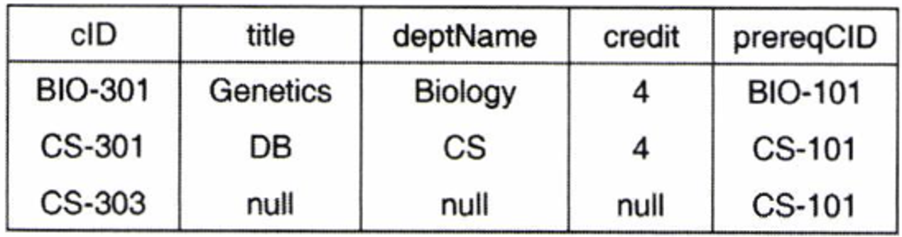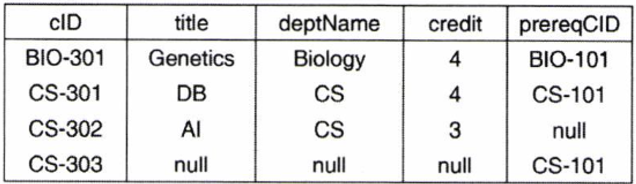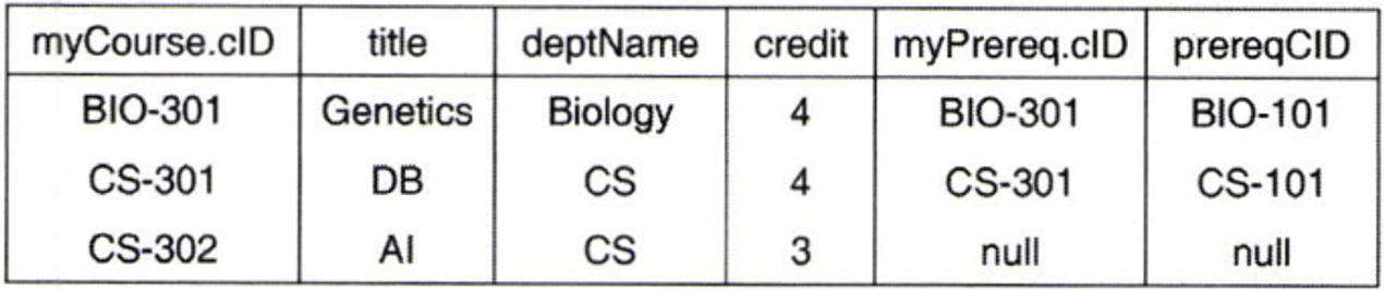 myCourse left outer join myPrereq on myCourse.cID, myPrereq.cID