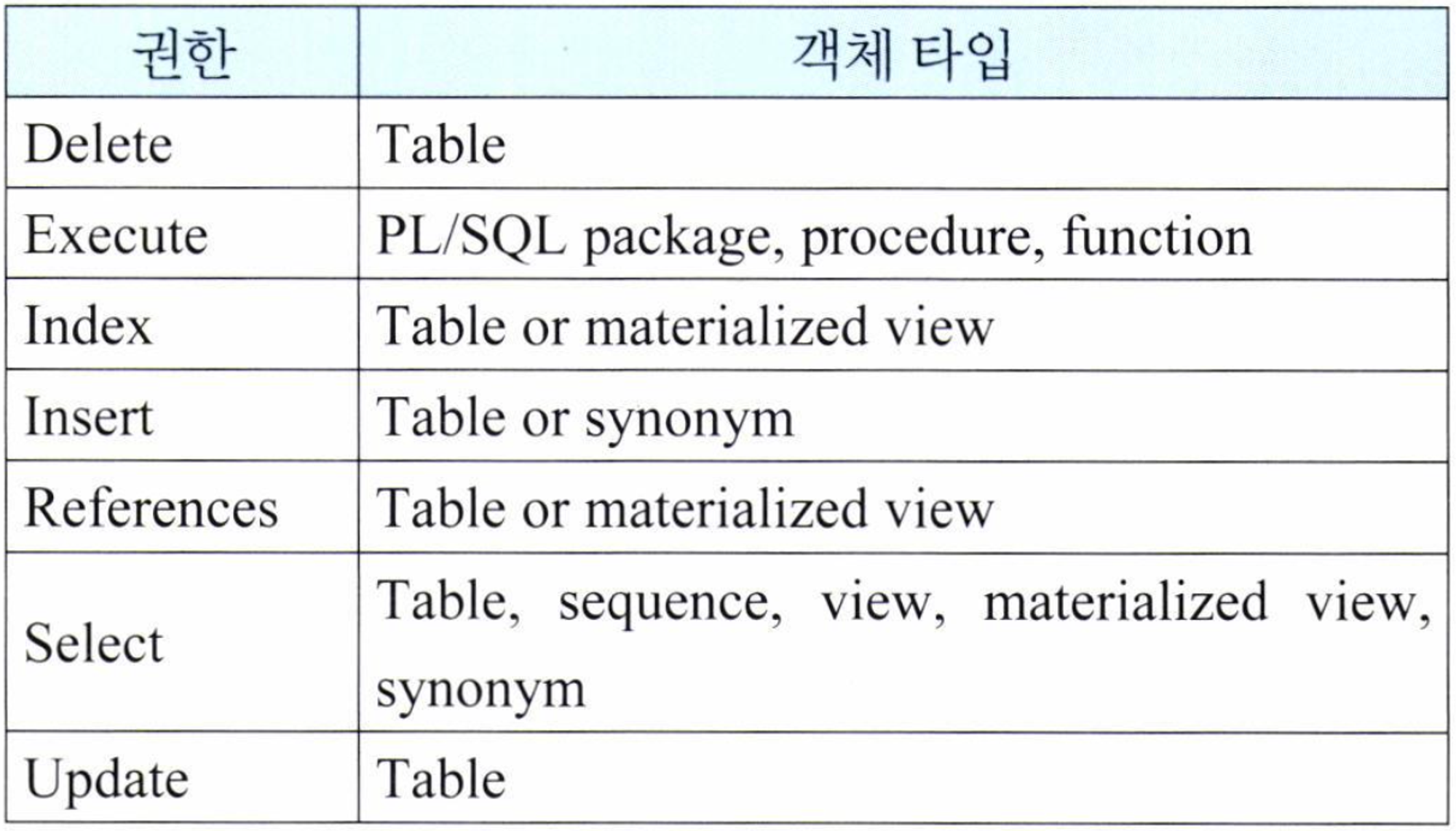 객체 권한은 반드시 권한 및 적용되는 타입이 함께 명시 되어야함