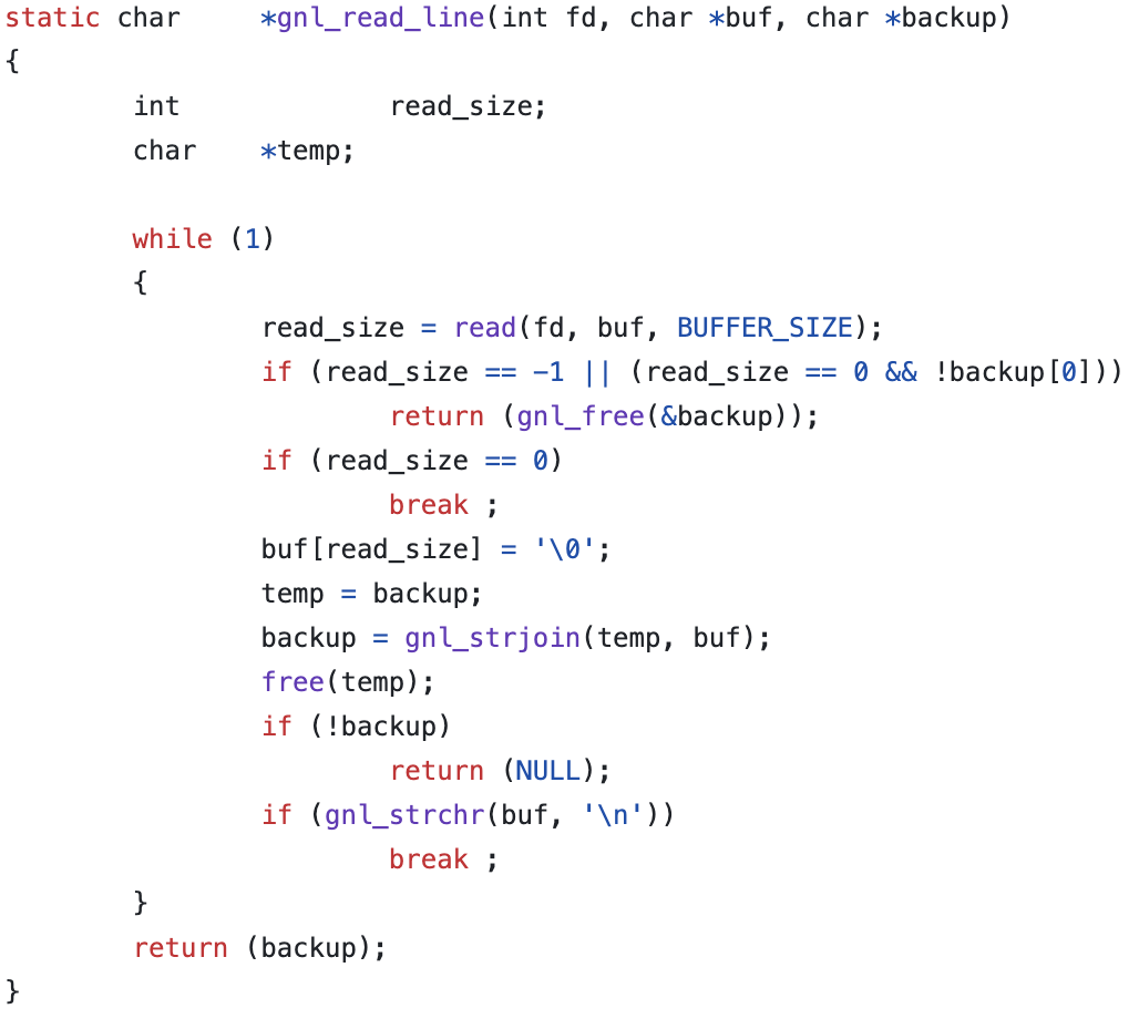 - gnl_read_line 함수로 개행문자가 나오기 전까지 fd 값으로 파일을 읽어서 backup에 저장한다.