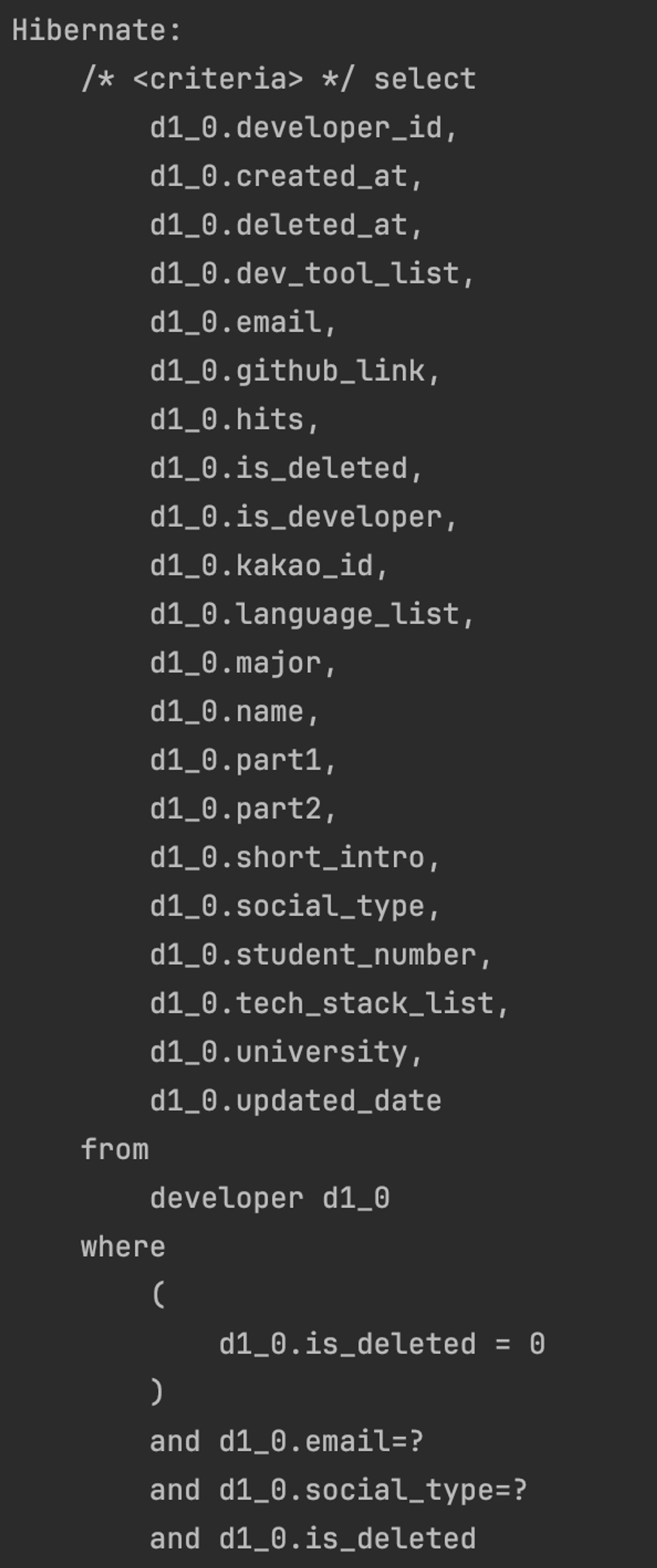 soft delete 구현 이전에 developer를 조회하는 코드들이 존재했고 만약 위 어노테이션을 사용하지 않았다면 모든 developer 조회 코드에 is_deleted = false 조건을 추가해주어야 하고, 이후에 개발되는 코드들도 해당 조건을 추가해야 한다.