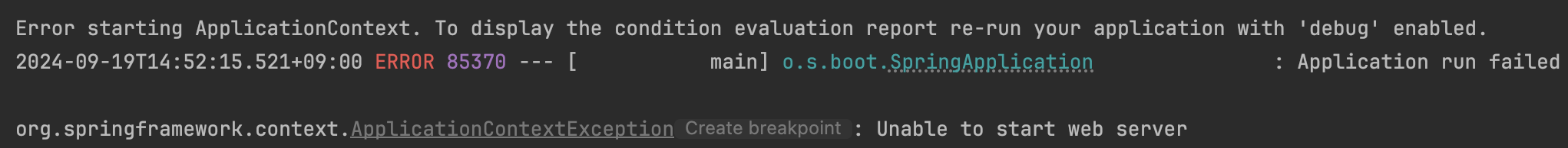 애플리케이션 실행 오류