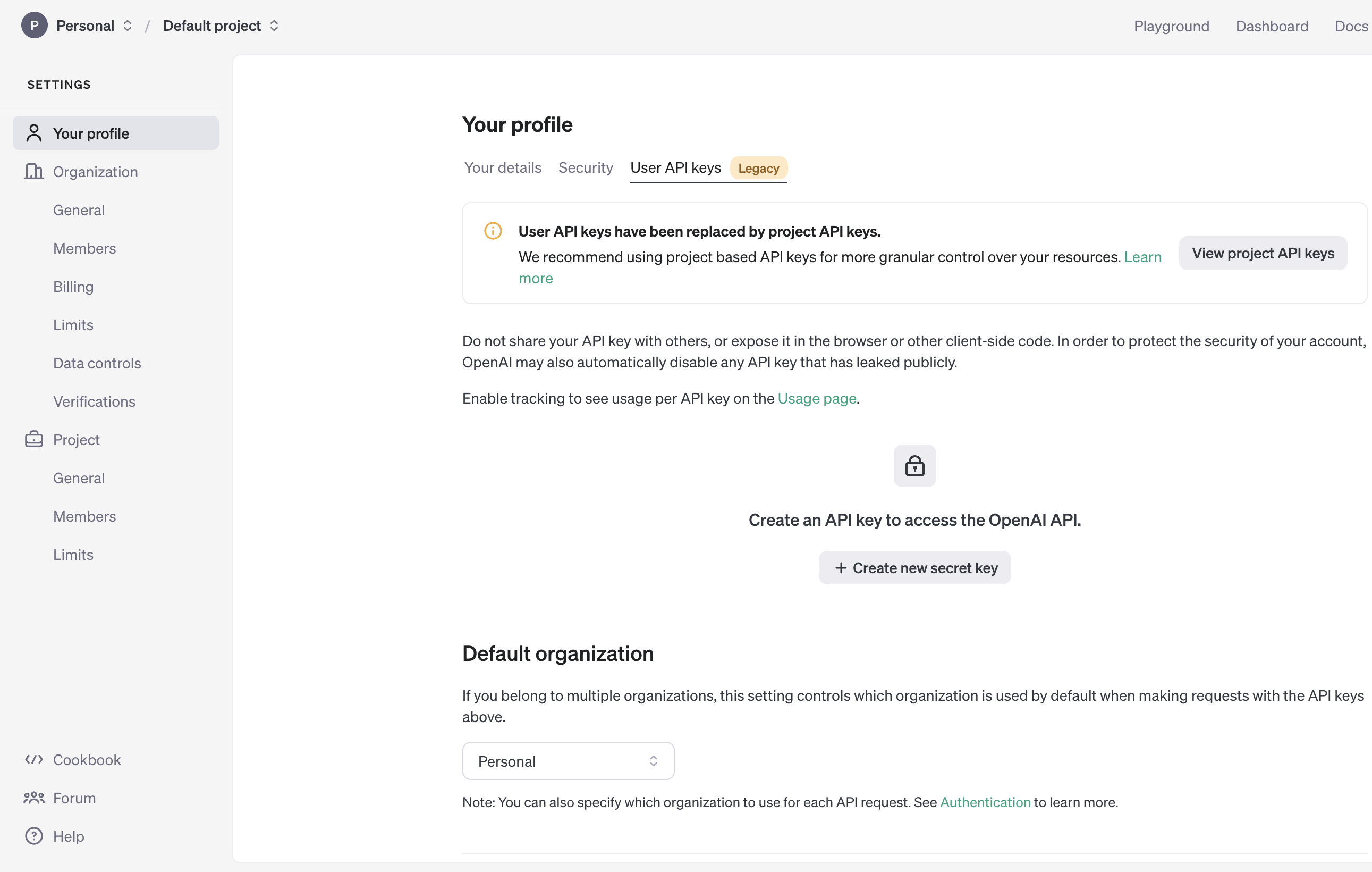 왼쪽의 Your profile -> User API keys -> View project API keys -> Create new secret key 클릭