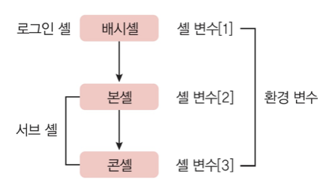 셸 변수: 현재 셸에서만 사용할 수 있고 서브 셸로는 전단되지 않는 변수