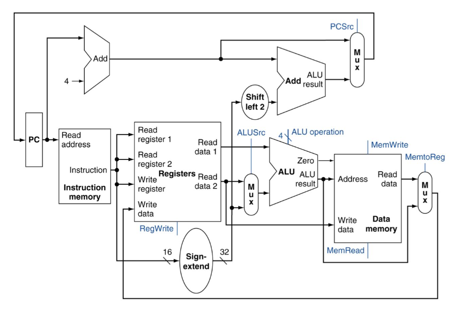 - 데이터패스는 검정색 / 컨트롤패스는 파란색