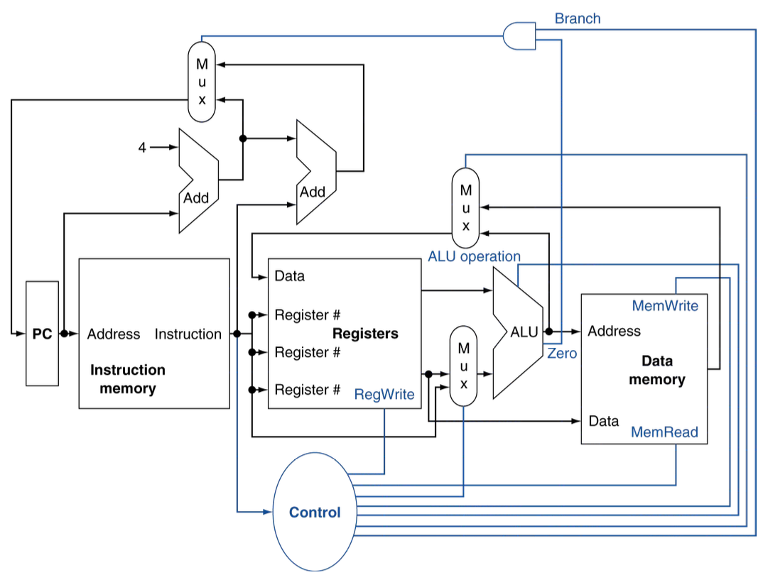 - 데이터패스는 검정색 / 컨트롤패스는 파란색