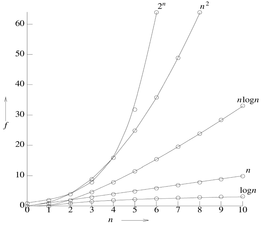 O(빅오) - 모든 n, n≥n₀ 에 대해 f(n)≤cg(n)인 조건을 만족시키는 두 양의 상수 c와 n₀가 존재하면 f(n) = O(g(n))