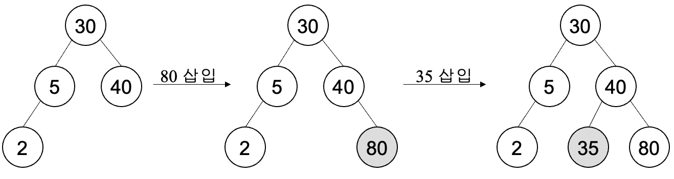- 탐색이 실패하면 탐색이 끝난 지점에 쌍을 삽입