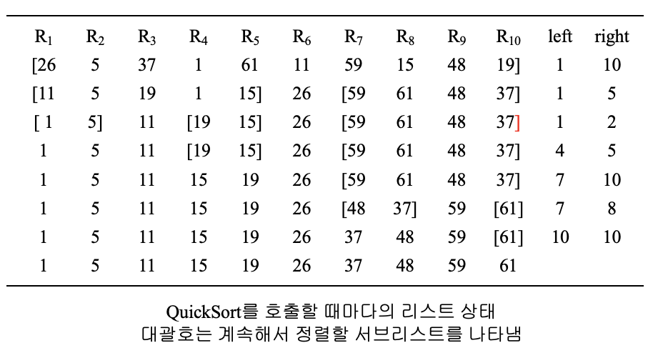 - 정렬할 레코드 중 pivot 레코드를 선택