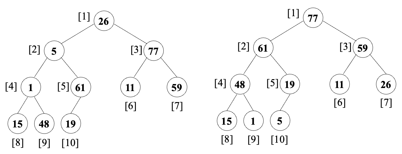 swap(a[1], a[i + 1]); // 현 히프의 처음과 마지막을 교환
