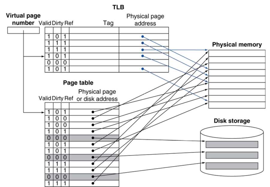 - 페이지 fault인 경우 -> 물리디스크에서 물리메모리로 읽어옴, TLB 업데이트