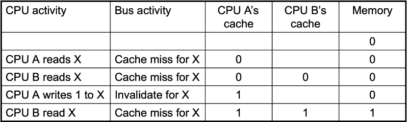 - 개별 캐시들이 동일한 값을 가지도록 만들어야 함