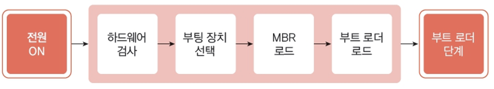 - 메모리에 로딩된 MBR은 부트 로더를 찾아 메모리에 로딩하는 작업까지 수행