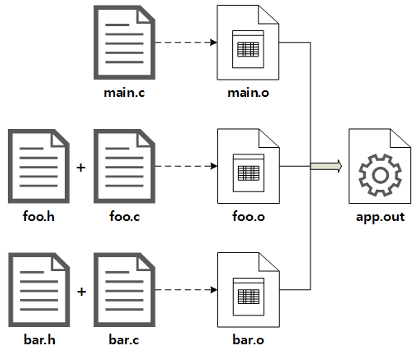 make 명령은 makefile에 설정된 정보를 읽어서 여러 소스 파일을 컴파일하고 링크하여 최종 실행 파일을 생성