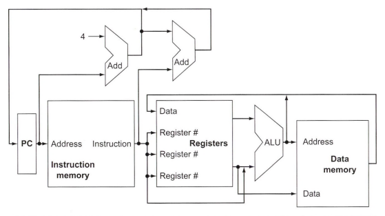 - 3번째 멀티플렉서는 PC + 4와 분기 목적지 주소 중 어느 것을 PC에 써야 할지 ALU의 Zero출력으로 제어